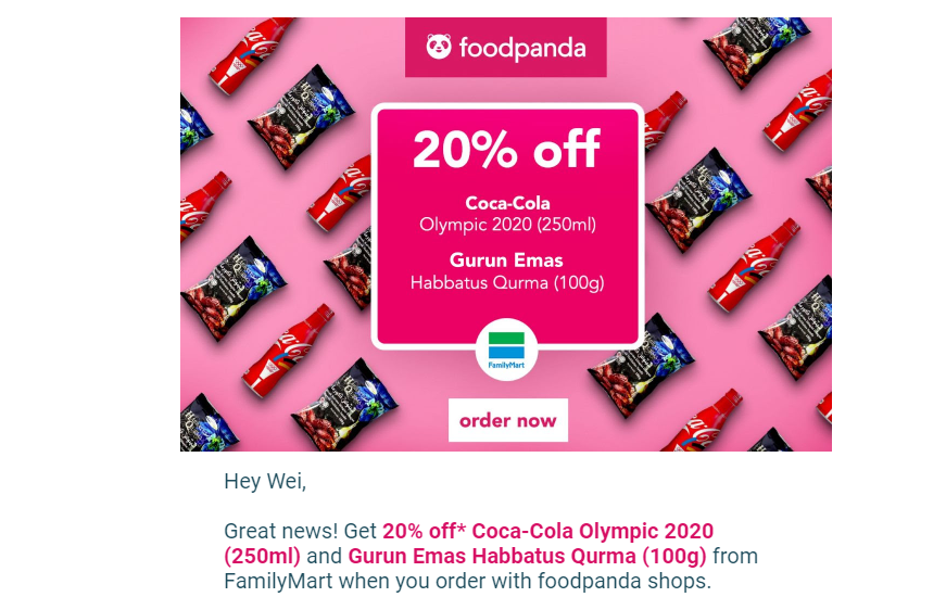 不只foodpanda这个公司在用而已,电邮行销很多商家都会利用这个方法来提升销售。比如 HB或 steam 的游戏平台套。
