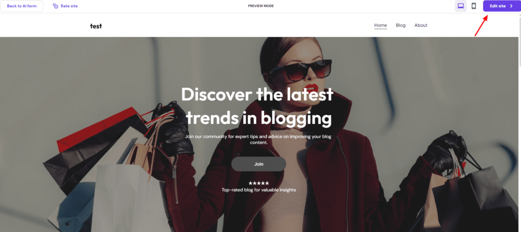 稍等一下后,ai会随机生成模版,如果不满意可以回到 hostinger后台之后,选择网站页面。